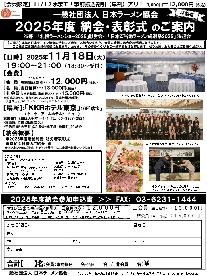 【NEW】11/18火「2025年度 納会・表彰式」開催のご案内(※11/12まで事前振込割引アリ!)